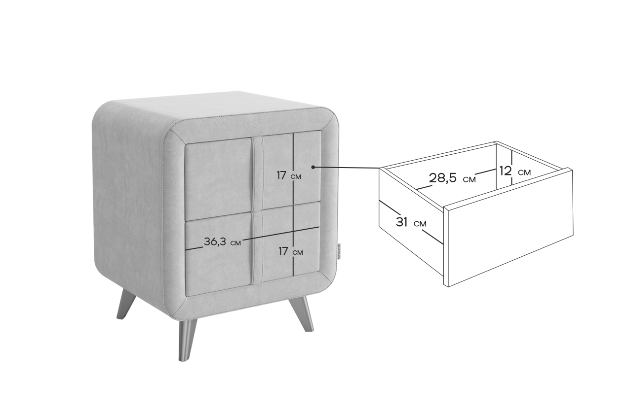 Тумба прикроватная Софи 3 грей алькантара (велюр) из каталога Детские тумбы купить в Екатеринбурге в магазине мебели онлайн Мебельсон по цене 8 090 ₽