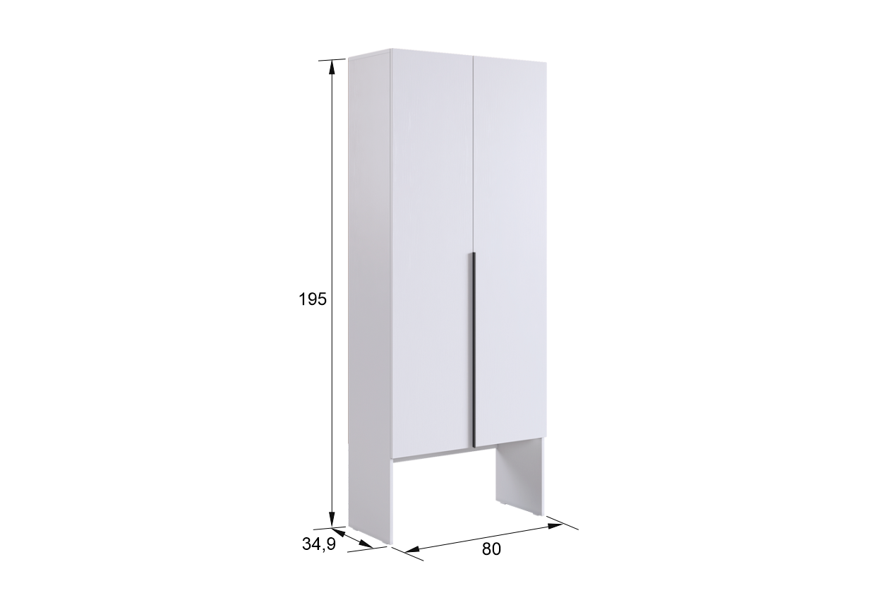 Изготовленный из высококачественного ЛДСП толщиной 16 мм, шкаф гарантирует прочность и долговечность. Длинные пластиковые ручки добавляют современный акцент и удобство в использовании.
