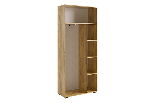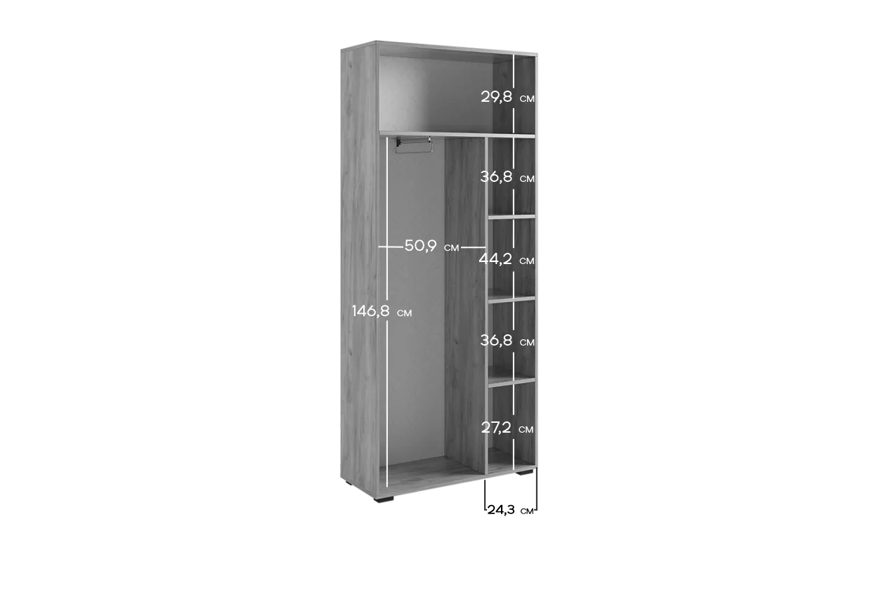 Шкаф Бери предлагает отличное решение для аккуратного хранения вашего гардероба. Он идеально дополнит современный интерьер благодаря своему дизайну и функциональности. Внутри шкафа имеется вместительное отделение с выдвижной штангой для одежды на вешалках, несколько полок для сложенных вещей и антресольная ниша для сезонных вещей. Вставки на фасадах, выполненные с вертикальной фрезеровкой, делают эту модель по-настоящему уникальной.