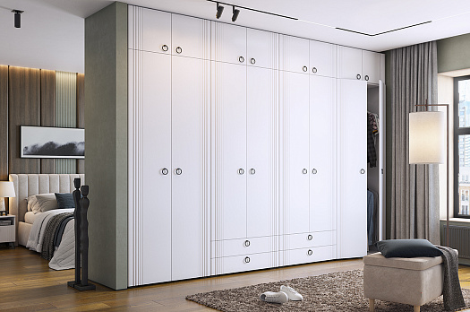 Мы используем только высококачественные материалы: корпус из ламинированного ДСП белого дерева, а фасады выполнены из МДФ, облицованного матовой белой пленкой ПВХ. Вертикальные полосы на фасаде добавляют изысканности и неповторимости данному изделию. Благодаря толщине ламинированного ДСП в 16 мм, шкаф обладает высокой прочностью и долговечностью. По бокам вы найдете пвх кромку толщиной 0,4 мм для максимальной защиты от повреждений.