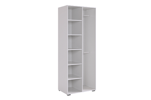 Шкаф "Ева" имеет две секции: одну с двумя штангами для одежды и вторую с пятью полками. Это позволяет удобно организовать вашу одежду, обувь и другие предметы. Этот шкаф обеспечит идеальный порядок в вашей комнате и позволит экономить место.