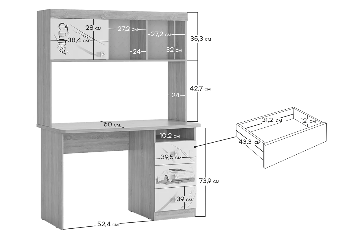 Детский стол Форсаж - это сочетание функциональности и стиля. Он создан, чтобы обеспечить вашему ребенку комфортное место для учебы и творчества. С функциональной надстройкой, полками и тремя выдвижными ящиками, этот стол станет идеальным решением для хранения всех необходимых учебных материалов. Будь то письмо, чтение или работа за компьютером - Форсаж идеально подойдет для любых задач.