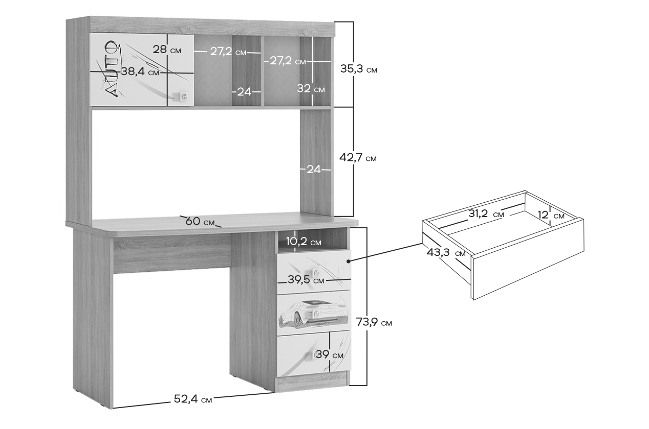 Детский стол Форсаж - это сочетание функциональности и стиля. Он создан, чтобы обеспечить вашему ребенку комфортное место для учебы и творчества. С функциональной надстройкой, полками и тремя выдвижными ящиками, этот стол станет идеальным решением для хранения всех необходимых учебных материалов. Будь то письмо, чтение или работа за компьютером - Форсаж идеально подойдет для любых задач.
