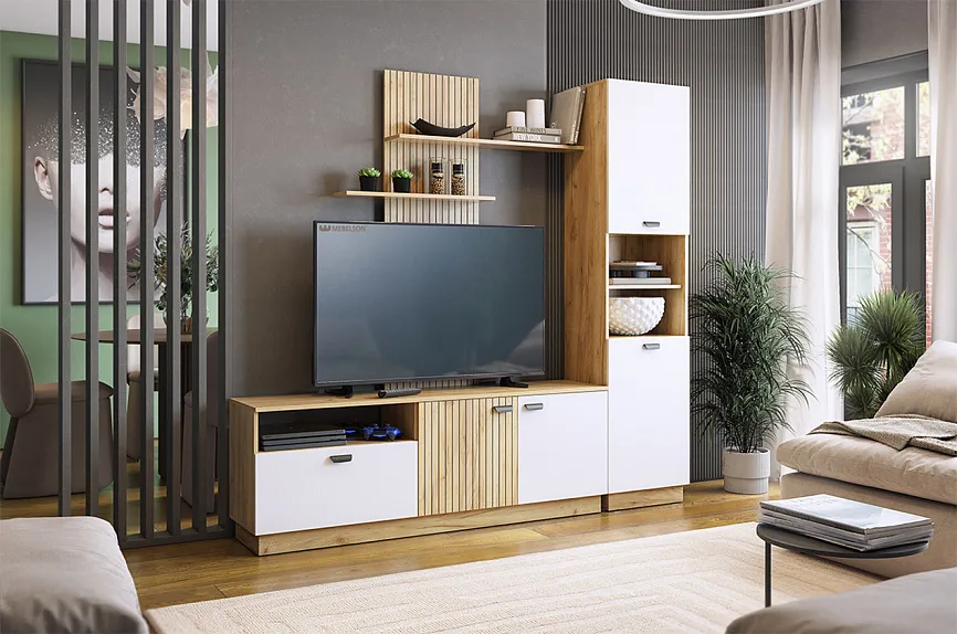 - Тумбы под ТВ и модульные системы — это современное и практичное решение для гостиной. Они позволяют эффективно использовать пространство и обеспечивают удобный доступ к мультимедийным устройствам и другой технике.