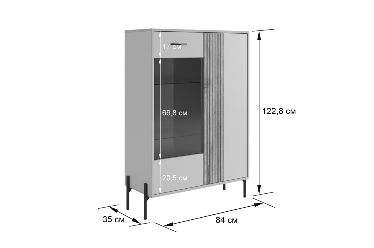 Комод "Доминика" (со стеклом) – это воплощение элегантности и функциональности. Широкий и высокий, он предлагает обширное пространство для хранения, при этом украшая ваш интерьер своим стильным дизайном.