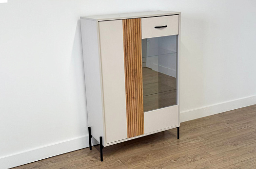 Доминика Комод (со стеклом) кашемир/дуб крафт золотой из каталога Комоды купить в Екатеринбурге в магазине мебели онлайн Мебельсон по цене 14 090 ₽