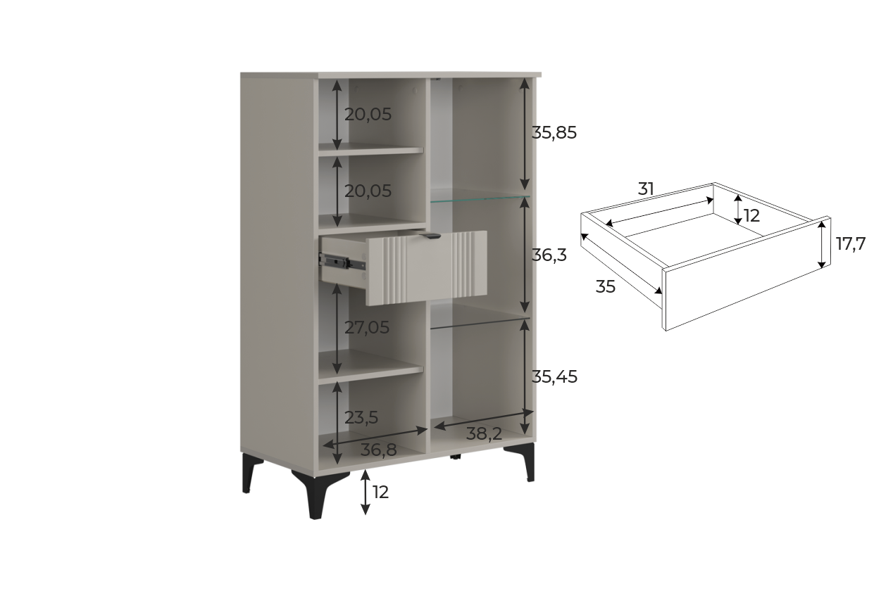 Комод 2 "Рич" (со стеклом)