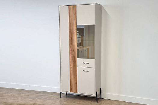 Доминика Шкаф двухдверный (со стеклом) кашемир/дуб крафт золотой из каталога Витрины купить в Екатеринбурге в магазине мебели онлайн Мебельсон по цене 20 790 ₽