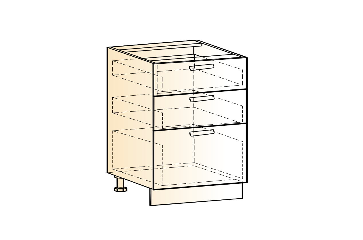 Шкаф рабочий с выкатными ящиками, из серии «Джаз». Замечательно подойдет для хранения кастрюль и сковород, а также столовых приборов.