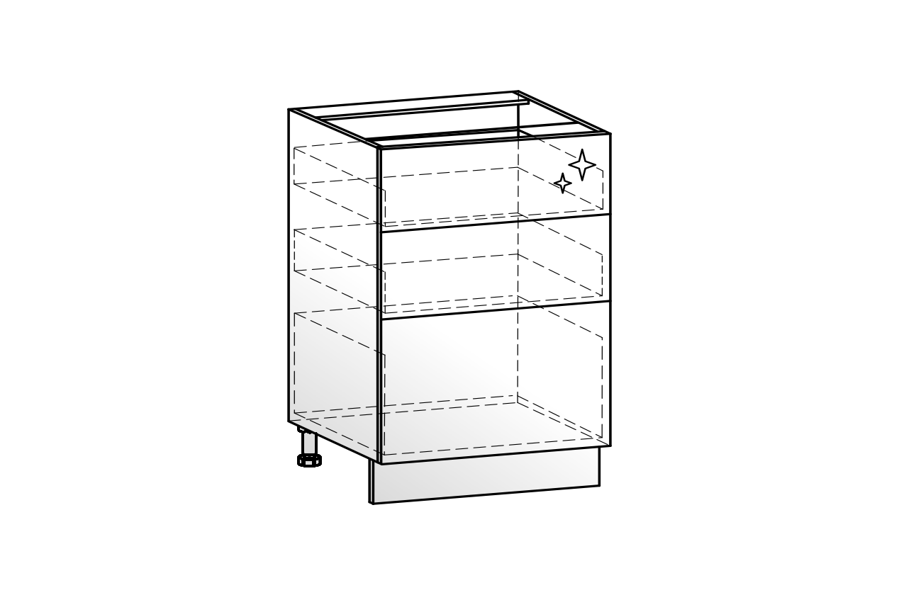 Кристи Шкаф рабочий L600 Старт (3 ящ.) (эмаль) белый/дымчатый глянец из каталога Кухонные модули купить в Екатеринбурге в магазине мебели онлайн Мебельсон по цене 22 080 ₽