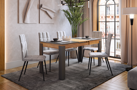 Стол обеденный раздвижной Гермес 2 графит/дуб крафт золотой из каталога Обеденные столы купить в Екатеринбурге в магазине мебели онлайн Мебельсон по цене 11 990 ₽